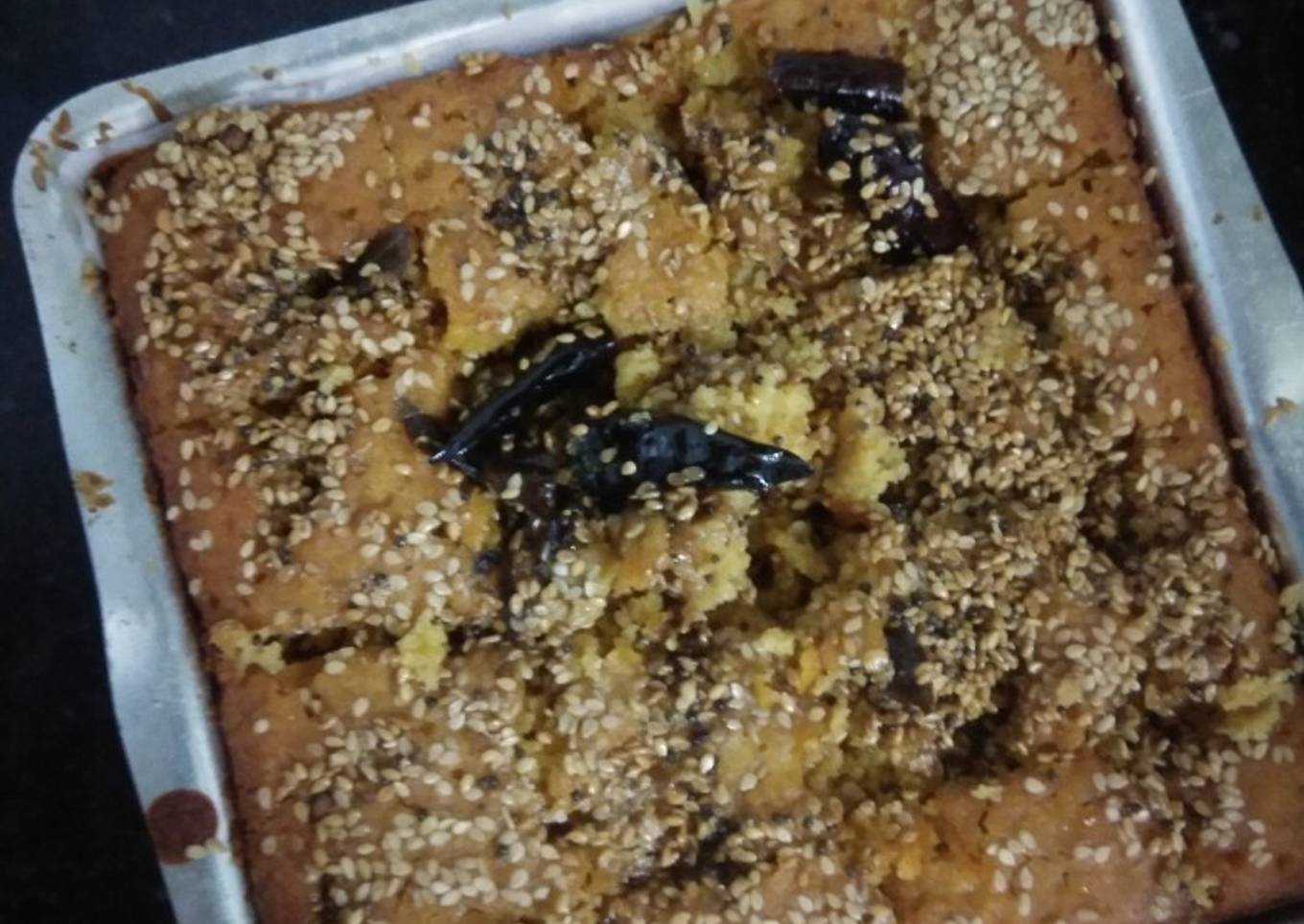 - Now keep remaining tempering add dry red chilli get roasted and pour on the batter. Keep in preheated vessel for 40 min on low medium flame. To toothpick test. And have yummy baked Handva.