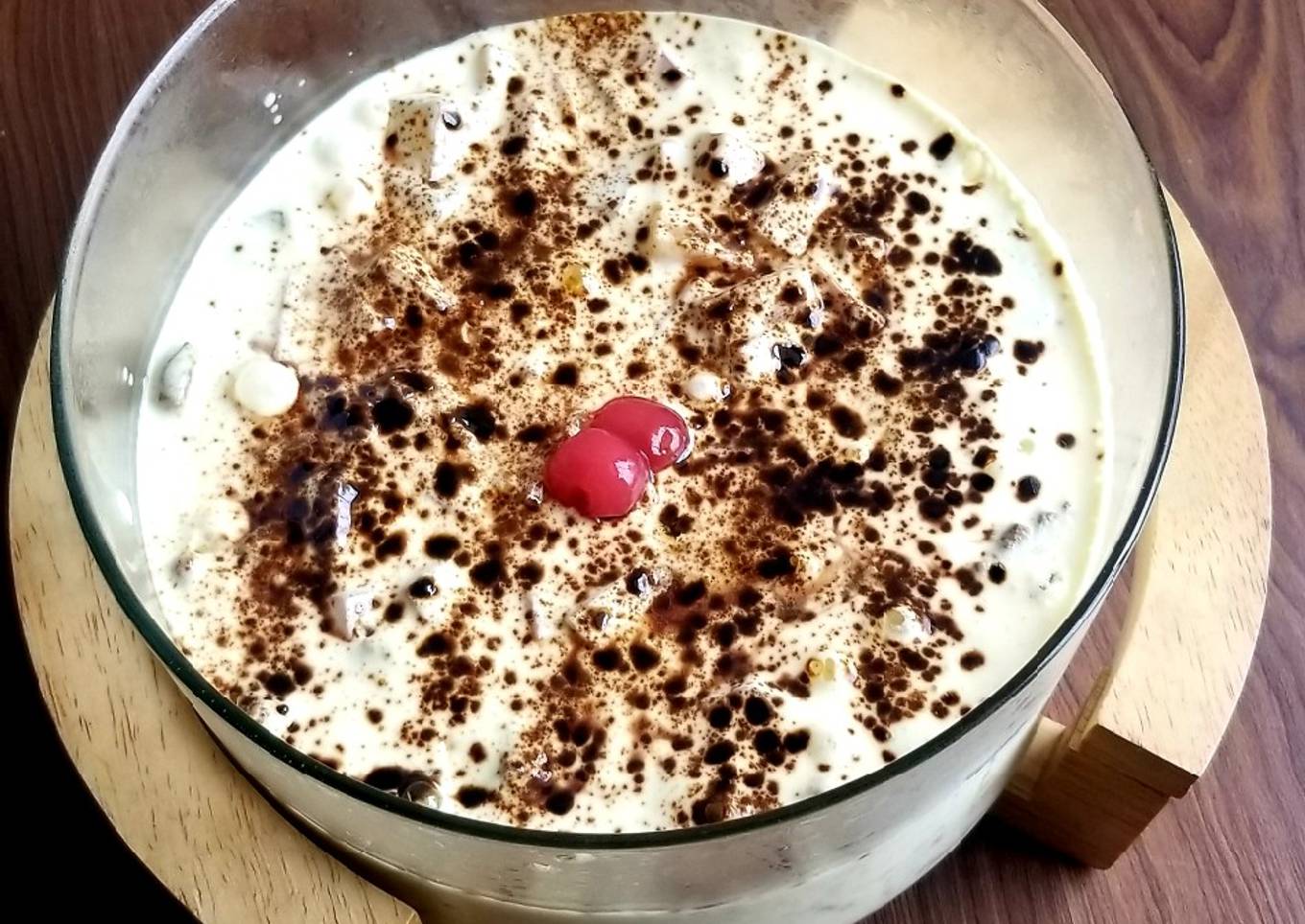 - Take it out in a bowl & add fruit cocktail, candi biscuits and mix.